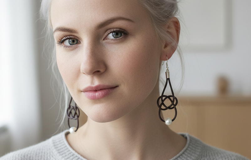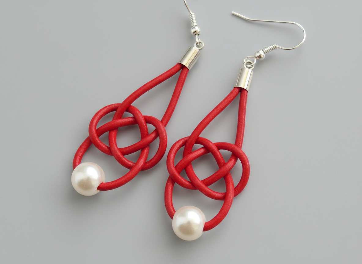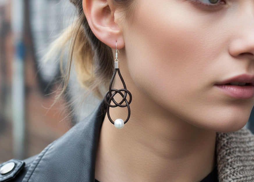 Pendientes nudo marinero infinito de cuero con ganchos de plata o acero