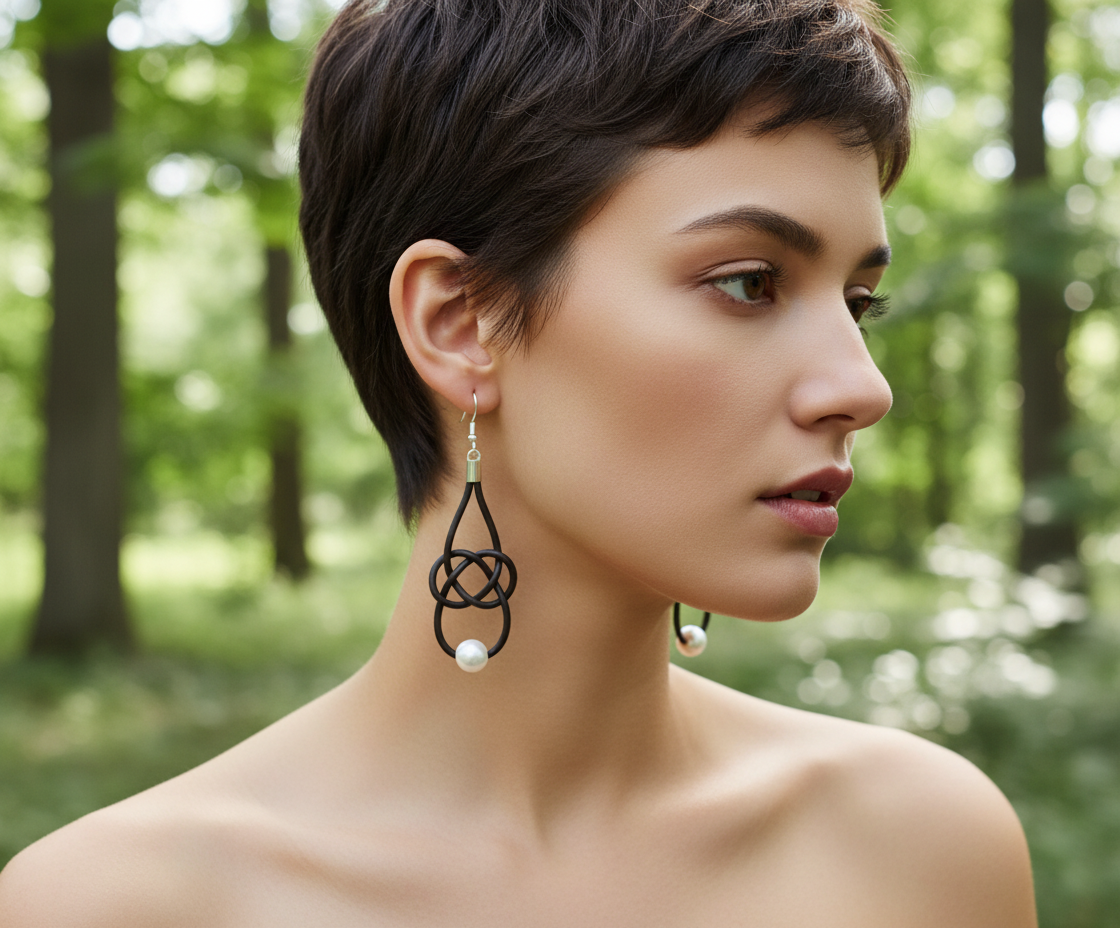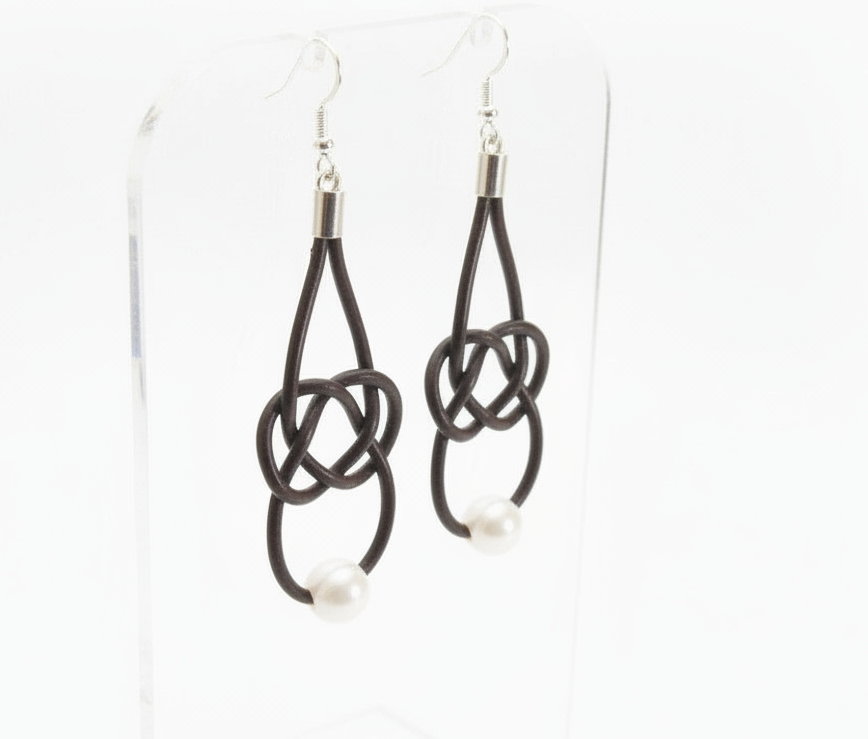 Pendientes nudo marinero infinito con una perla y cuero. Las perlas con el nudo infinito hecho en cuero le dan un inconfundible estilo náutico y marinero a estos pendientes, pero a la vez tienen el toque chic que le da la perl