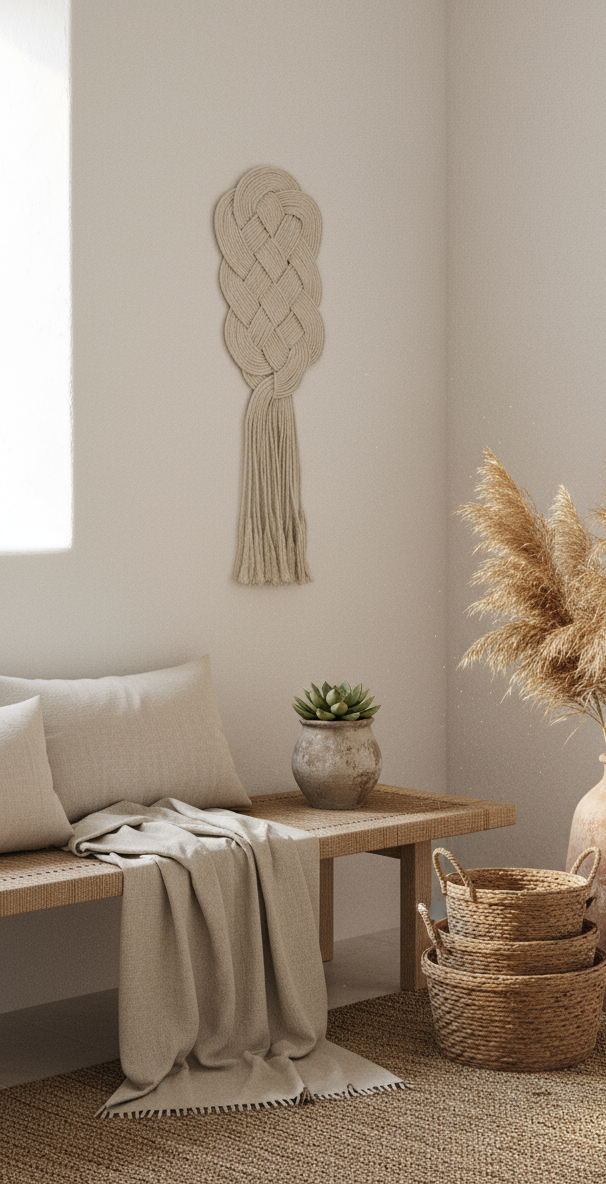 Tapiz nudos macramé para pared con nudo celta protector del hogar.