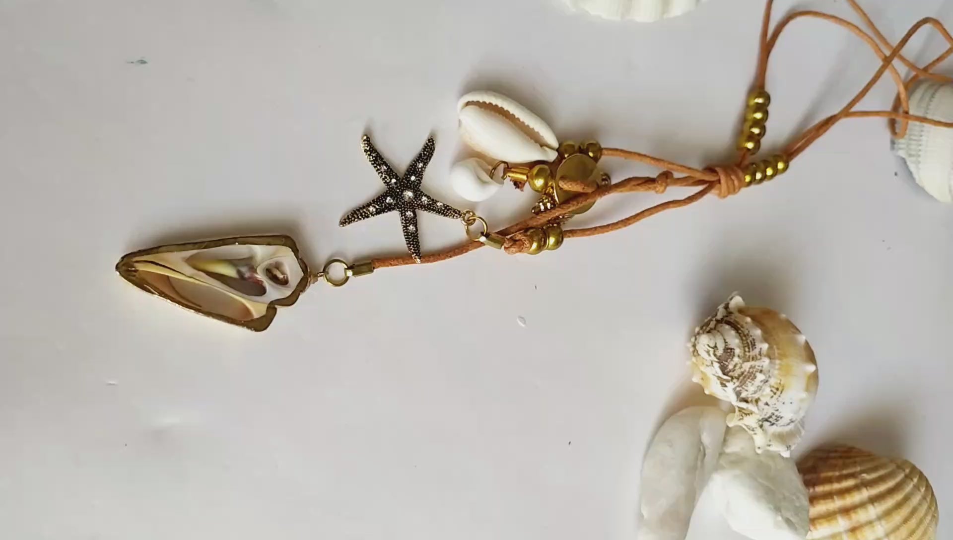 Colgante boho con caracolas marinas, estrella de mar y nácar
