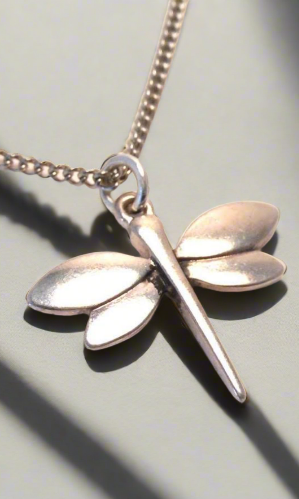 Es una collar corto de estilo minimalista. Lleva un colgante con una delicada libélula de color plateado.