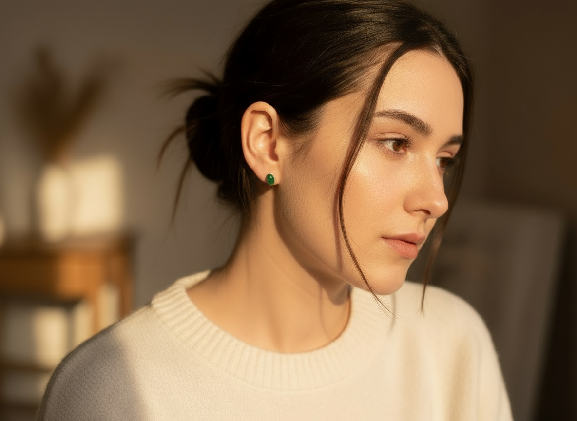 Les boucles d'oreilles bouton en pierre de jade vert sont petites et discrètes avec des pierres de jade vertes naturelles, ce sont des pierres naturelles et ne sont donc pas exactement les mêmes en forme et en couleur, toute différence entre elles n'est pas un défaut mais une démonstration qu'elles sont entièrement naturelles.