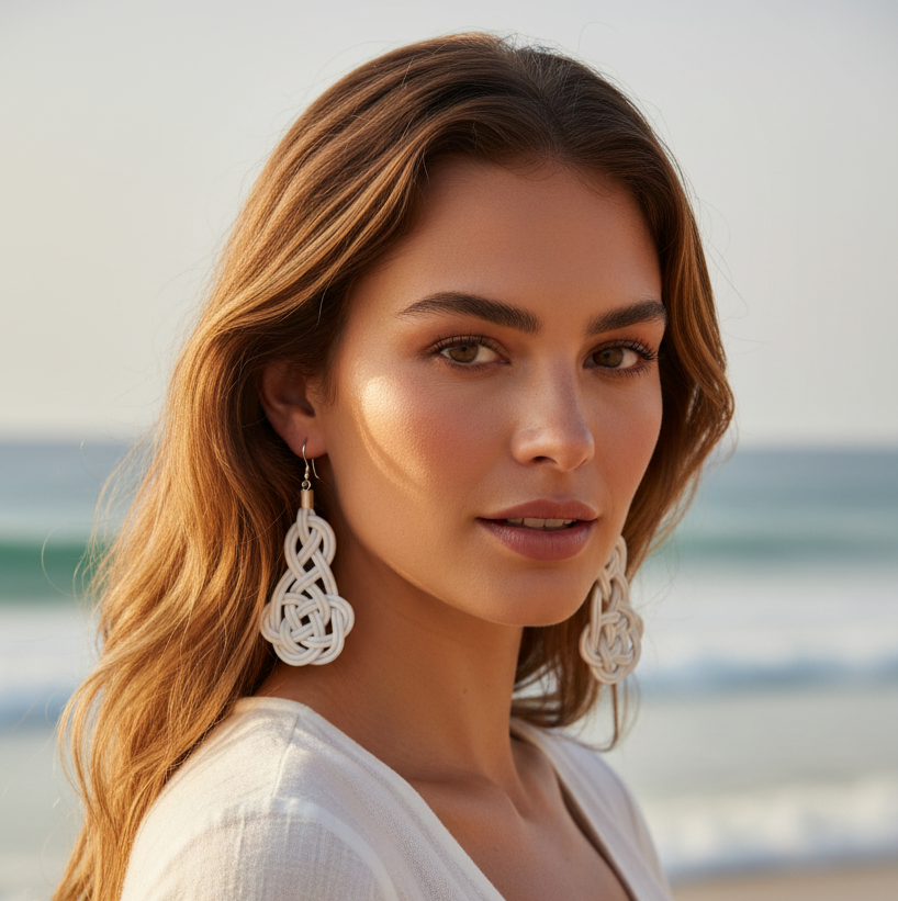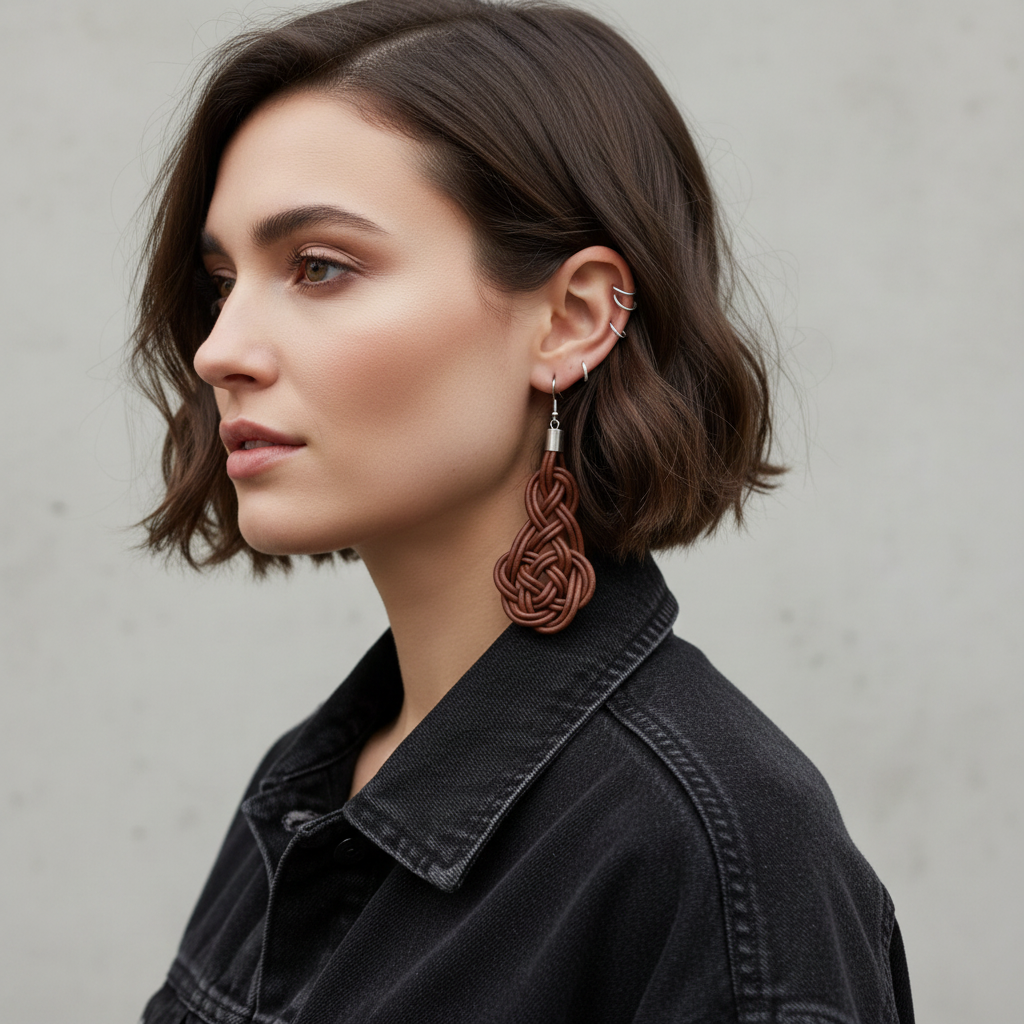 Kit y tutorial para pendientes de macramé de cuero y plata.