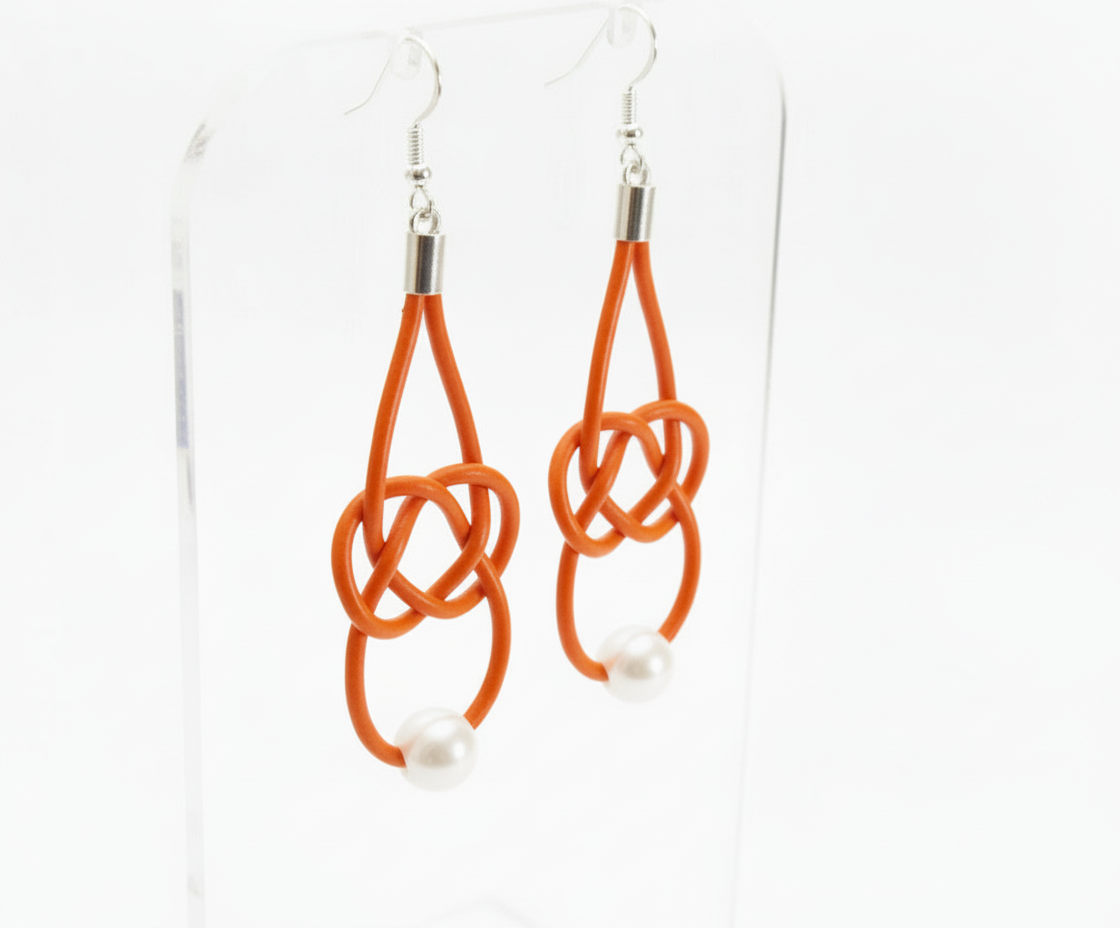 MATERIALES : Cuero. Ganchos de Plata de Ley 925 / Acero Quirúrgico. Perla artificial.