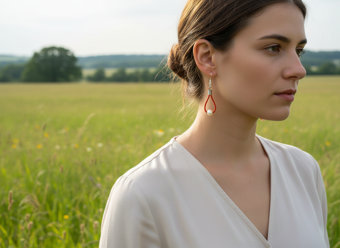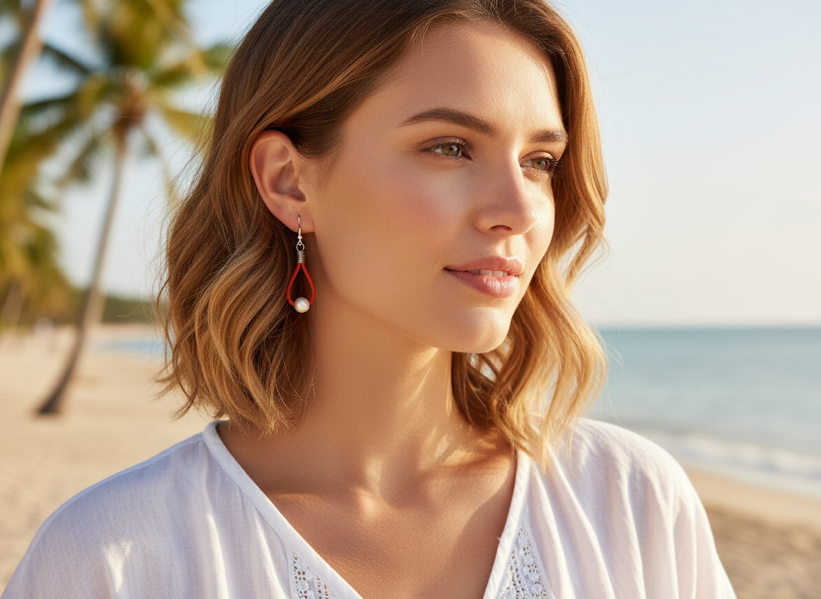 MATERIAL: Cuero,Ganchos de Plata de ley 925 / Acero Quirúrgico, Perla artificial.