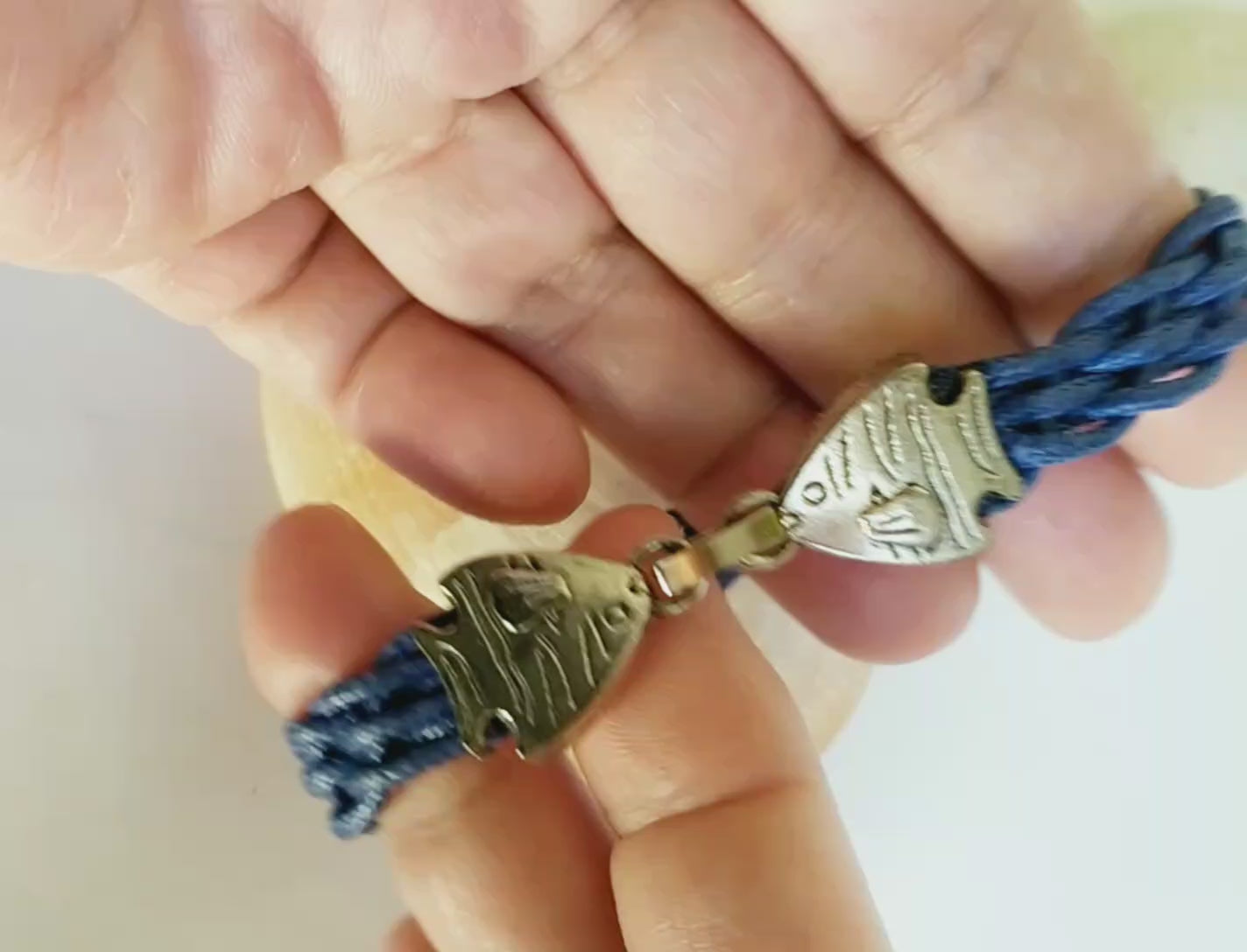 Pulsera trenzada de estilo marinero en azul náutico con cierre pez