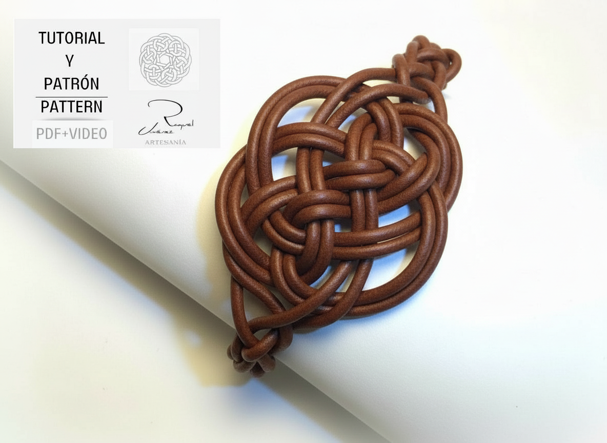 - Patrón y tutorial para hacer una pulsera con nudo celta del amor eterno, el patrón lleva un código QR que enlaza al video con el tutorial.